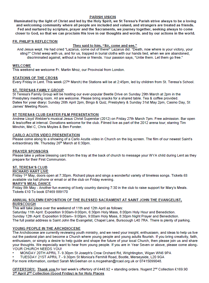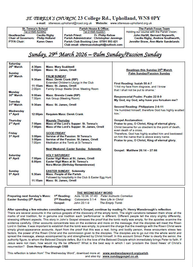 Mass times at St Teresa's
