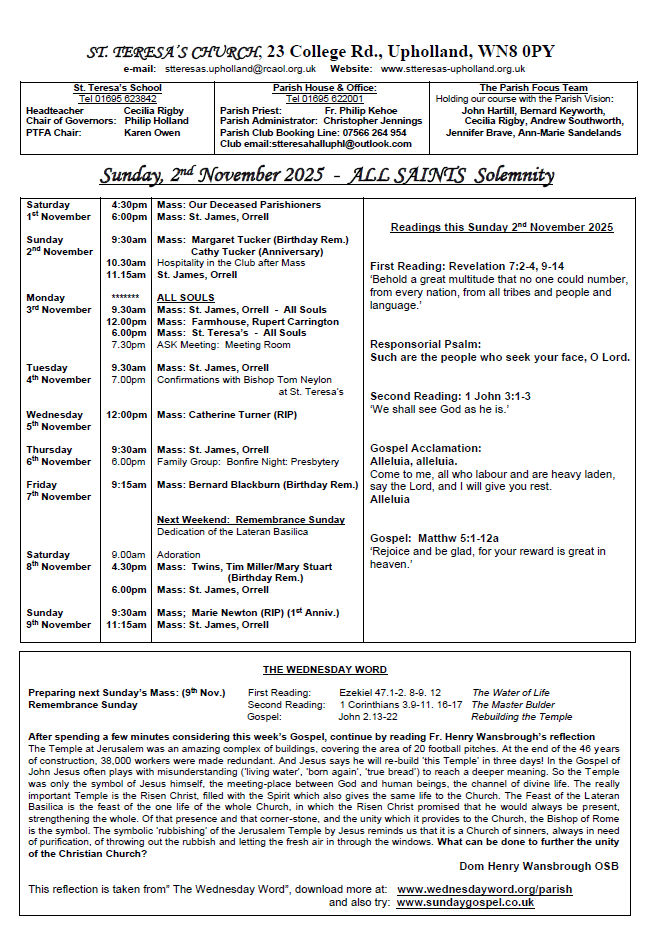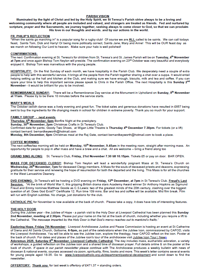 Newsletter - Sunday 2nd November 2025