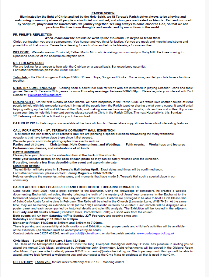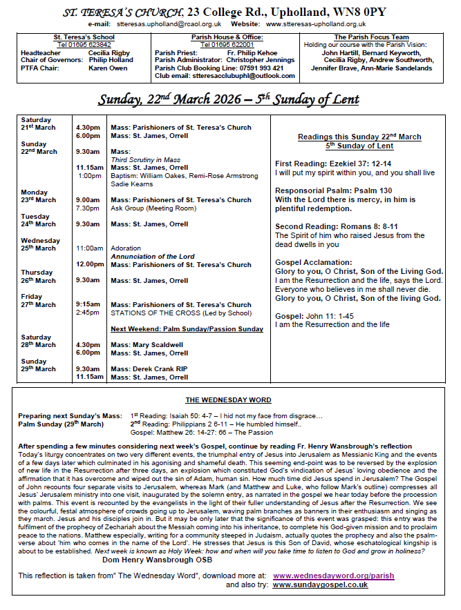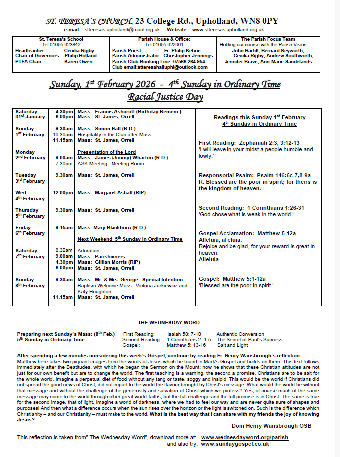 Mass times at St Teresa's